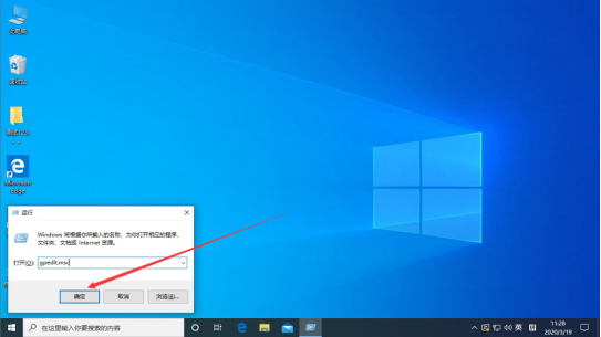 打开设备后,按“Win+R”打开运行,输入“gpedit.msc”,并按下回车键;
