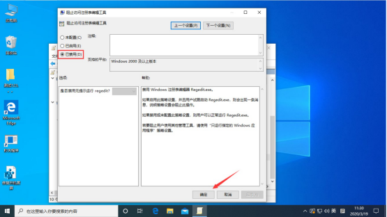 最后,将“阻止访问注册表编辑器”选项设置为已禁用即可。