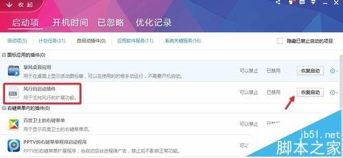 5、自启动插件中我们将这里的风行插件进行关闭启动。