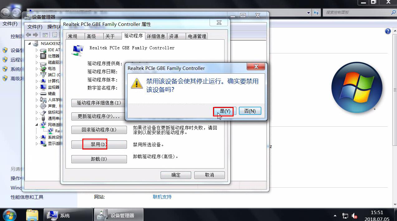 6 第六步接着选择卸载 ,将网卡驱动卸载掉