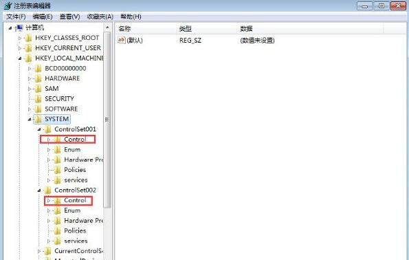 3、在注册表编辑器窗口中依次展开HKEY_LOCAL_MACHINE\SYSTEM\ControlSet002\Control和HKEY_LOCAL_MACHINE\SYSTEM\ControlSet001\Control在这两个目录中查看是否有StorageDevicePolicies子项,且该子项中是否有WriteProtect值(位于右侧),如果有则将其改为0,然后点击确定并保存,重启系统即可,否则执行下一步;