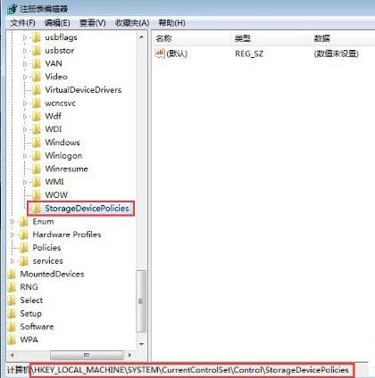 4、展开HKEY_LOCAL_MACHINE\SYSTEM\CurrentControlSet\Control\StorageDevicePolicies 如无StorageDevicePolicies该项,则新建,将新建项重命名为【StorageDevicePolicies】即可;