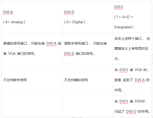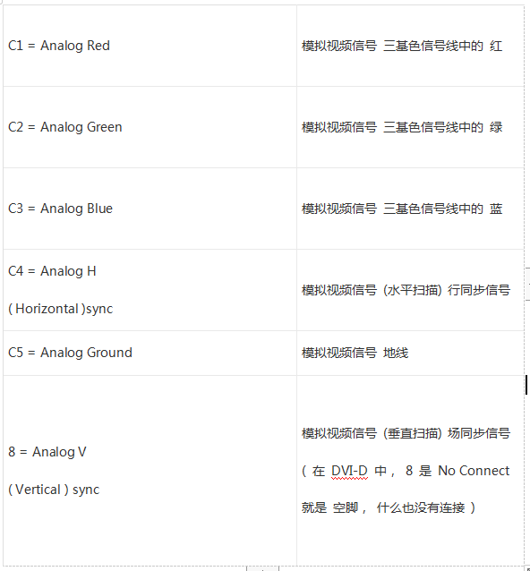 其中DVI-D和DVI-I的引脚定义如下表所示:
