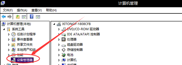 在弹出的”计算机管理“对话框中点击左边栏中的”设备管理器“。