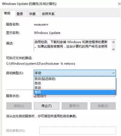 选择禁用,确定即可关闭自动更新服务。