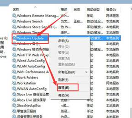 四、找到”windows update“,然后在上面点击鼠标右键再点击属性;