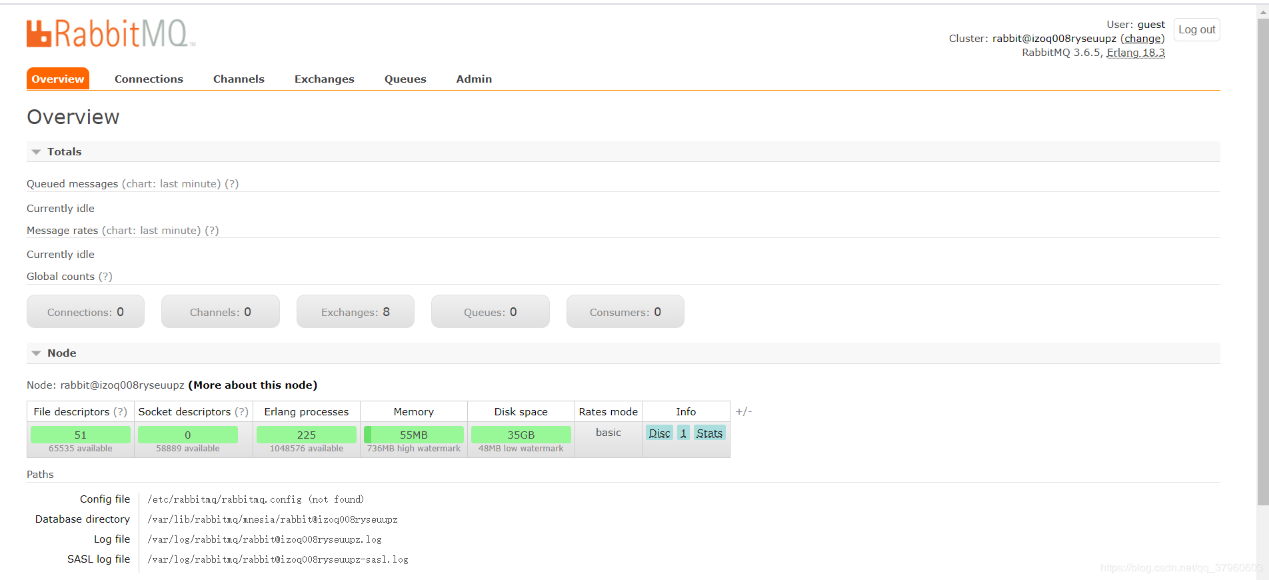 启动成功后,去服务器控制台的防火墙开一下15672端口,这样才能远程访问,不然会被墙了(可能要等一下才能访问,有延迟)。