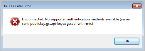 SSH登录时出现如下错误:DisconnectedNo supported authentication methods available