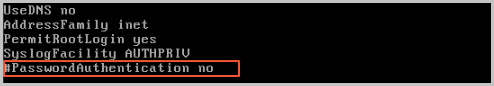 执行如下命令,按 i 键编辑SSH服务配置文件,将参数PasswordAuthentication设置为yes,或者在PasswordAuthentication参数前添加 #,按 Esc 键退出编辑模式,并输入:wq保存退出。
