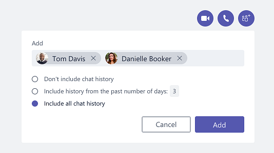 注意: 将某人添加到群组聊天(而非一对一)时,您可以包含聊天历史记录。