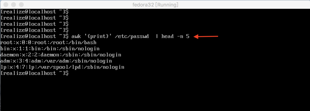 awk显示passwd中的内容,并且设置只显示前面5条信息