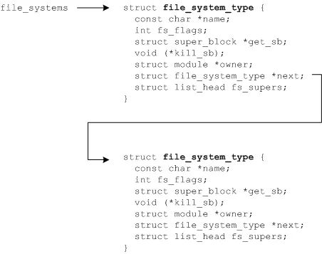 可以使用一组注册函数在 Linux 中动态地添加或删除文件系统。内核保存当前支持的文件系统的列表,可以通过 /proc 文件系统在用户空间中查看这个列表。这个虚拟文件还显示当前与这些文件系统相关联的设备。在 Linux 中添加新文件系统的方法是调用 register_filesystem。这个函数的参数定义一个文件系统结构(file_system_type)的引用,这个结构定义文件系统的名称、一组属性和两个超级块函数。也可以注销文件系统。