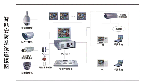 摄像头、电动变焦镜头、室外红外对射探测器、双监探测器、温湿度传感器、云台、防护罩、解码器、警灯、警笛等设备(设备使用情况根据用户的实际需求配置)。摄像头通过内置CCD及辅助电路将现场情况拍摄成为模拟视频电信号,经同轴电缆传输。电动变焦镜头将拍摄场景拉近、推远,并实现光圈、调焦等光学调整。温、湿度传感器可探测环境内温度、湿度,从而保证内部良好的物理环境。云台、防护罩给摄像机和镜头提供了适宜的工作环境,并可实现拍摄角度的水平和垂直调整。解码器是云台、镜头控制的核心设备,通过它可实现使用微机接口经过软件控制镜头、云台。