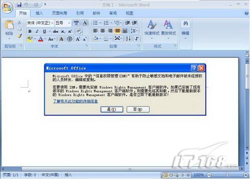 如图2所示,Office2007提示我们由于没有安装RMS客户端软件,无法使用限制访问的功能。如果想自动下载RMS客户端软件,点击“是”。