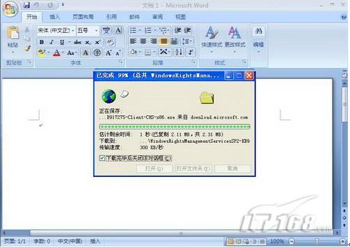 如图3所示,我们同意下载RMS客户端软件后,Word2007自动连接到微软网站去下载RMS客户端了。