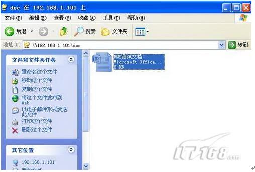 我们用域控制器临时客串一下文件服务器,如图5所示,我们可以看到域控制器上有一个DOC共享文件夹,共享文件夹中有一个用于测试的Office文件,我们要利用这个文件来检验一下RMS的表现。