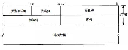 由图可知,ICMP数据包由8bit的类型字段和8bit的代码字段以及16bit的校验字段再加上选项数据组成。