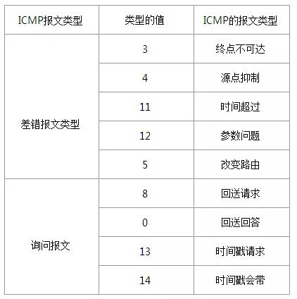 它包括:目标不可达(网络不可达、主机不可达、协议不可达、端口不可达、禁止分片等)、超时、参数问题、重定向(网络重定向、主机重定向等)等等。