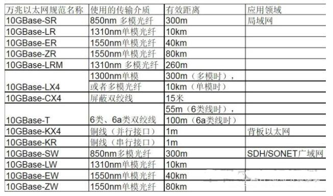 10G以太网的传输介质如下: