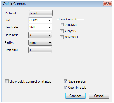 在PC上打开终端仿真软件,新建连接,设置连接的接口以及通信参数。(此处使用第三方软件SecureCRT为例进行介绍)