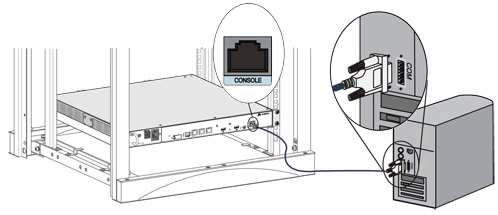 1. 将Console通信电缆的DB9(孔)插头插入PC机的COM口中,再将RJ-45插头端插入设备的Console口中,如