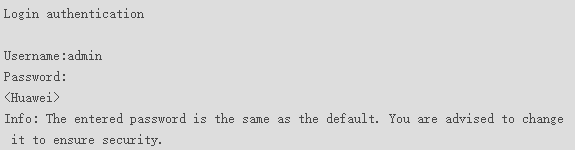 单击“Connect”,终端界面会出现如下显示信息,提示用户配置登录密码。设备缺省用户名为admin,密码为Admin@huawei。(以下显示信息仅为示意)
