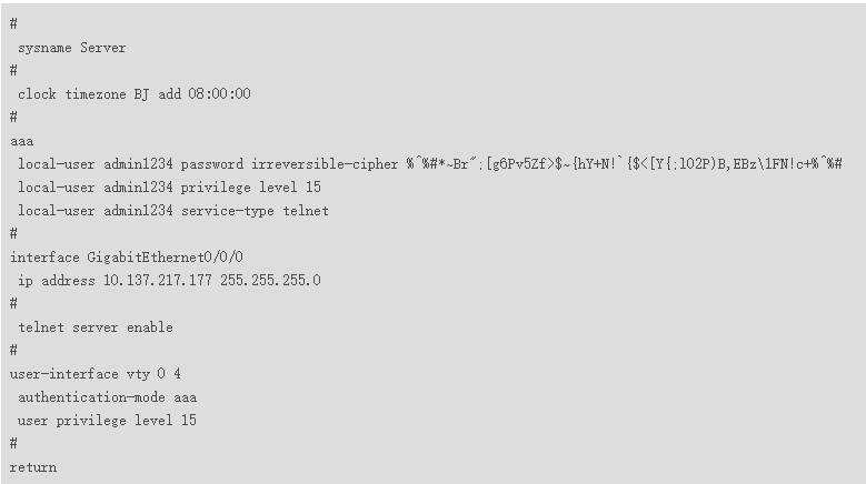 通过Console口首次登录设备后,对设备进行基本配置并配置通过Telnet远程登录的0~4号用户的级别为15级,认证方式为AAA认证。