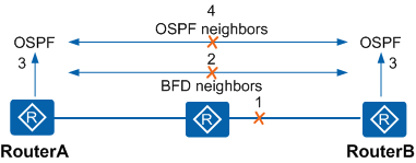 3. BFD通知本地OSPF进程BFD邻居不可达。