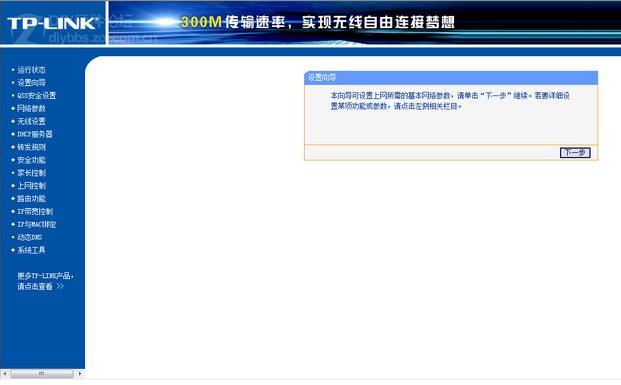 3、打开界面以后通常都会弹出一个设置向导向导,也可以点击左侧的设置向导打开,点击下一步来无线路由的联网设置。