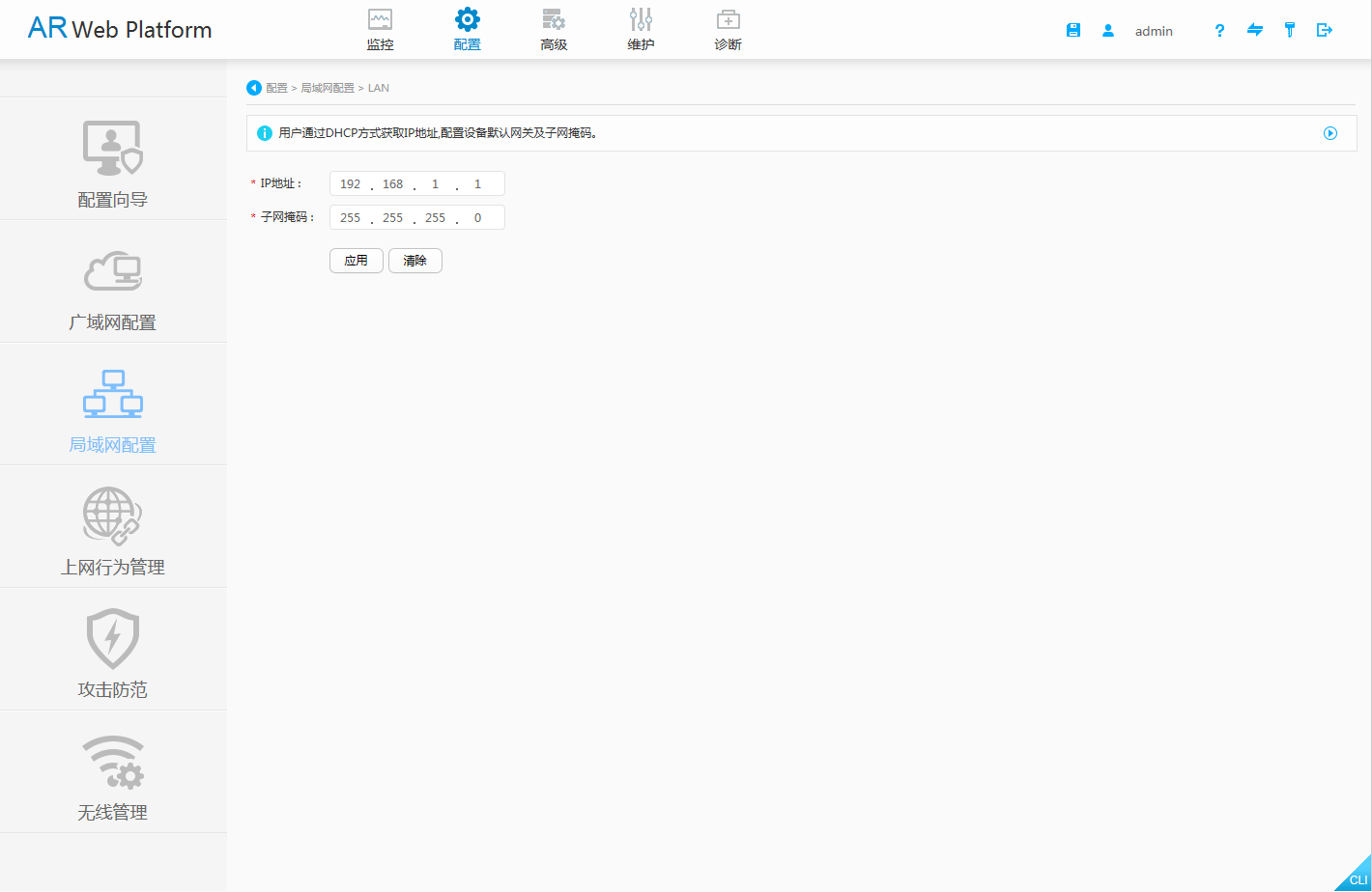 1. 选择“配置 > 局域网配置 > LAN(有线)”,进入LAN界面。如图1所示。
