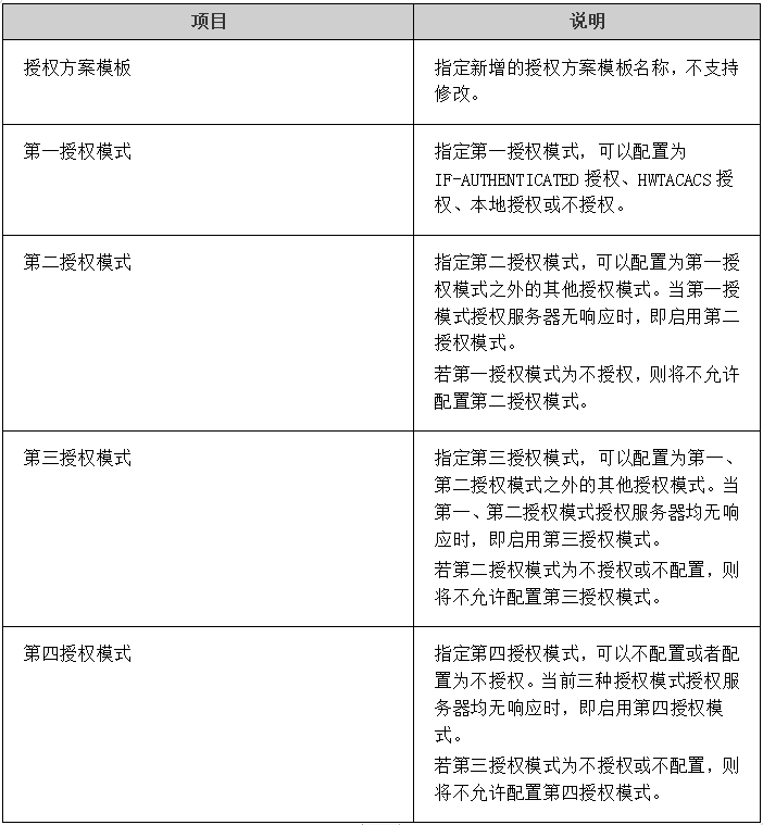 5. 配置授权方案模板的各项参数。具体参数说明请参见表1-79。