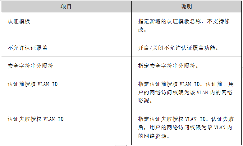 表1-81 新建认证模板参数说明