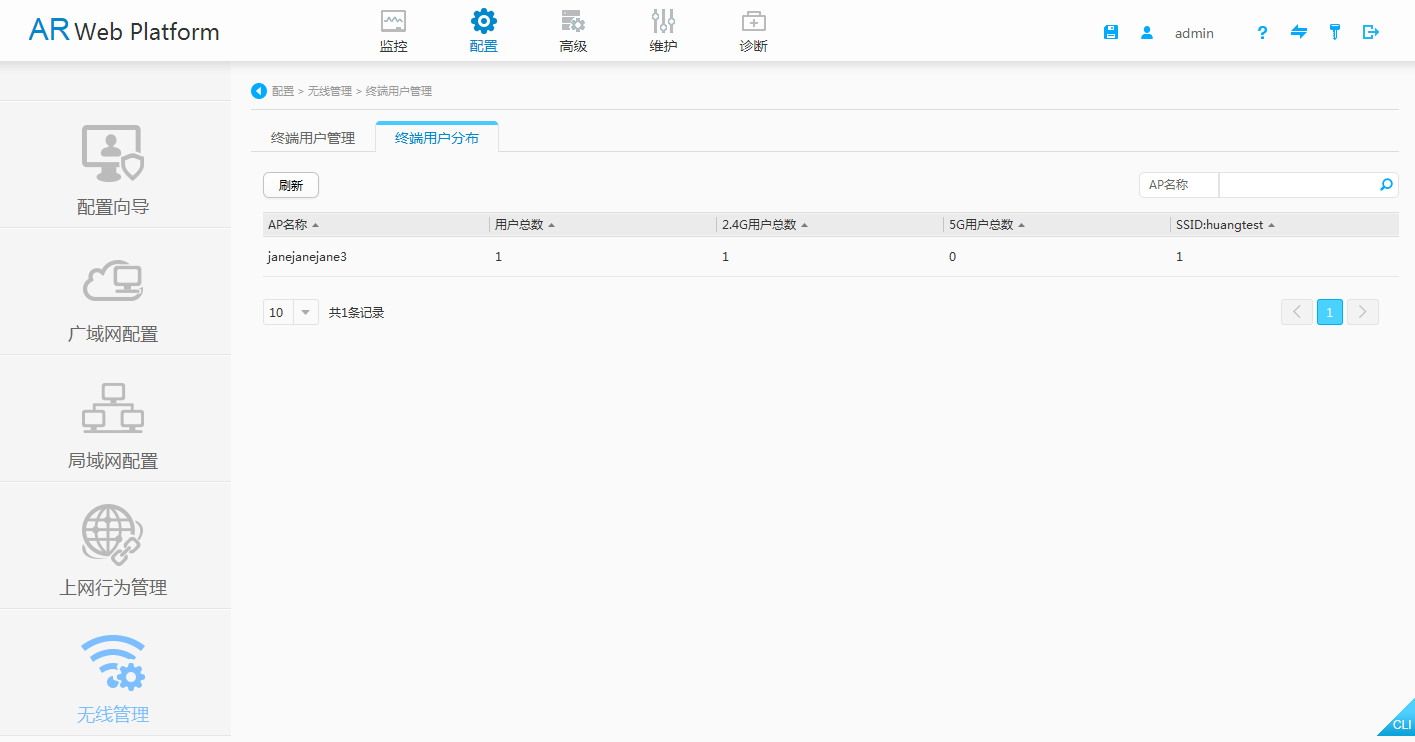 1. 依次单击“无线管理 > 终端用户管理 > 终端用户分布”,进入“终端用户分布”界面,如图1-235所示。