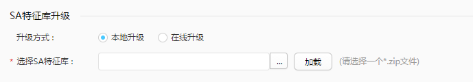 ”选择本地的升级文件包后,单击“加载”,如图1-267所示。加载成功后,在“特征库信息”区域可以看到加载的SA特征库信息。