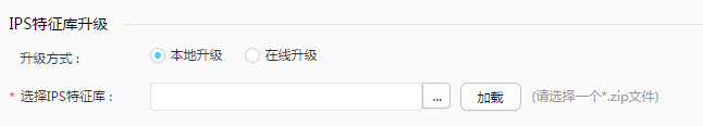 ”选择本地的升级文件包后,单击“加载”,如图1-270所示。加载成功后,在“特征库信息”区域可以看到加载的IPS特征库信息。
