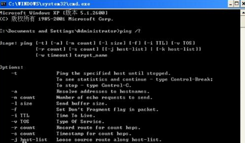 ping命令:这个可以说是我们用得最多的DOS命令。可以用来检测网络是否通畅、域名解析是正否正确以及是否丢包等等。这也是