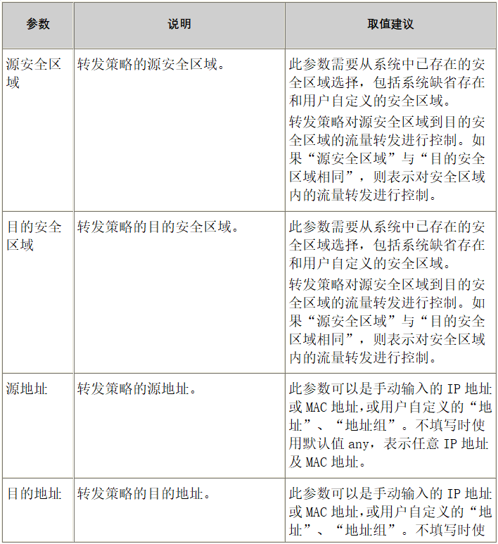 表 新建转发策略参数说明