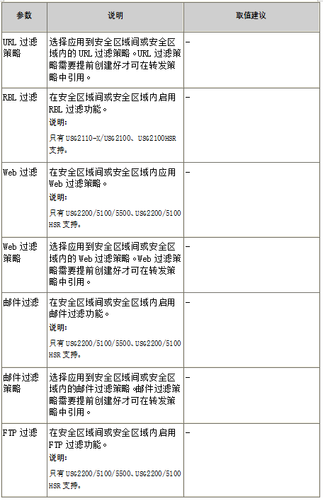 3. 重新输入或选择各项参数,如表7-3所示。其中“源安全区域”和“目的安全区域”不可修改。