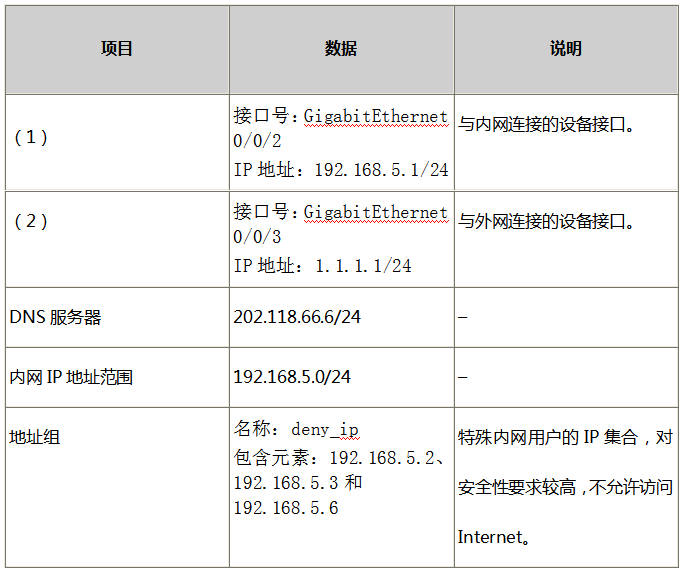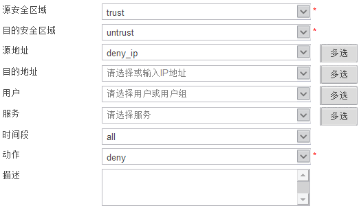 1. 配置拒绝特殊地址组deny_ip内IP地址访问Internet的转发策略。