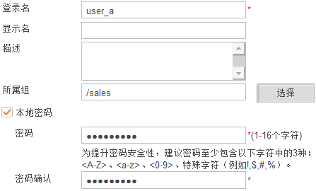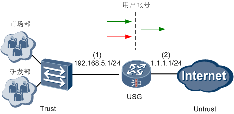 用户认证通过才能匹配转发策略,本例以本地密码认证为例。关于用户认证的详细介绍请参见用户管理部分。