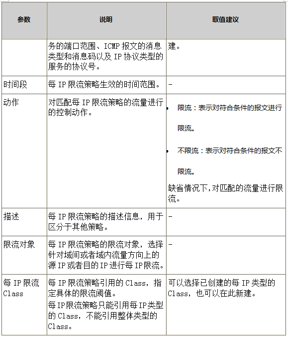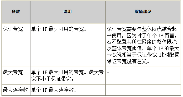 当需要基于IP进行流量控制时,可采用每IP限流策略,通过对源或者目的IP地址进行带宽和连接数的限制,以达到每IP限流的目的。