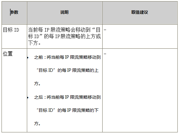 2. 在“每IP限流策略列表”中,单击需要移动的每IP限流策略所在行的。