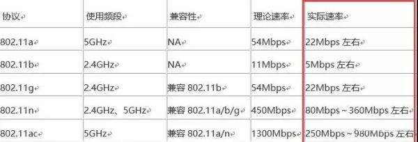 虽然很多AP的无线速率有450Mbps、600Mbps、750Mbps、1167Mbps,但实际上是达不到这些的,具体可以看下面列表。