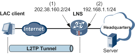 出差员工与LNS端建立隧道,直接向LNS发起连接请求。本例将实现Client-Initialized VPN方式建立L2TP的配置。