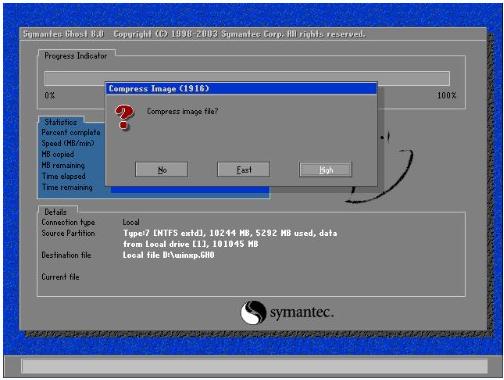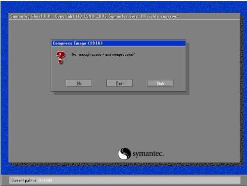 选Local→Partition→To Image菜单,弹出硬盘选择窗口,开始分区备份*作。点击该窗口中白色的硬盘信息条,选择硬盘,进入窗口,选择要*作的分区(若没有鼠标,可用键盘进行*作:TAB键进行切换,回车键进行确认,方向键进行选择)。在弹出的窗口中选择备份储存的目录路径并输入备份文件名称,注意备份文件的名称带有GHO的后缀名。接下来,程序会询问是否压缩备份数据,并给出3个选择:No表示不压缩,Fast表示压缩比例小而执行备份速度较快,High就是压缩比例高但执行备份速度相当慢。最后选择Yes按钮即开始进行分区硬盘的备份。Ghost备份的速度相当快,不用久等就可以完成,备份的文件以GHO后缀名储存在设定的目录中。