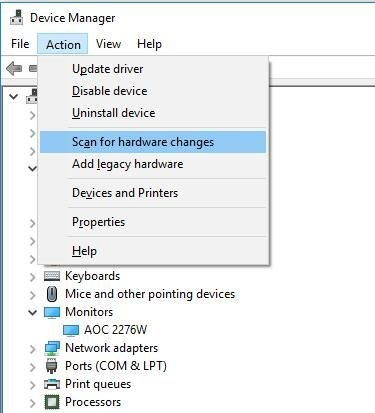4.返回设备管理器,然后单击“ 扫描硬件更改”。Windows将开始重新扫描计算机设备并重新安装C-Media USB设备的驱动程序。