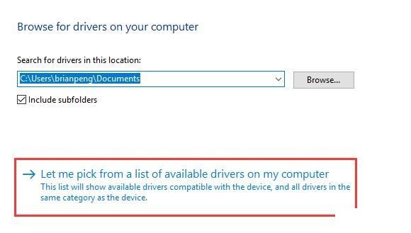 3. 从我的计算机上的可用驱动程序列表中选择“ 让我选择”。