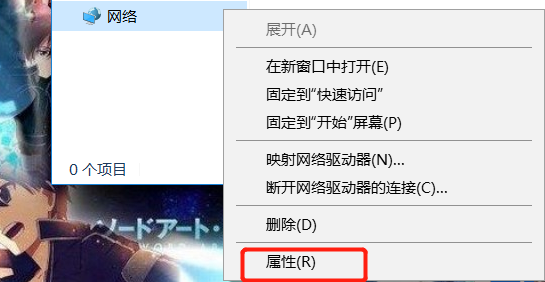 2、进入文件夹后,在左边列表里,鼠标右键单击“网络”,然后在弹出的选项里点击“属性”。