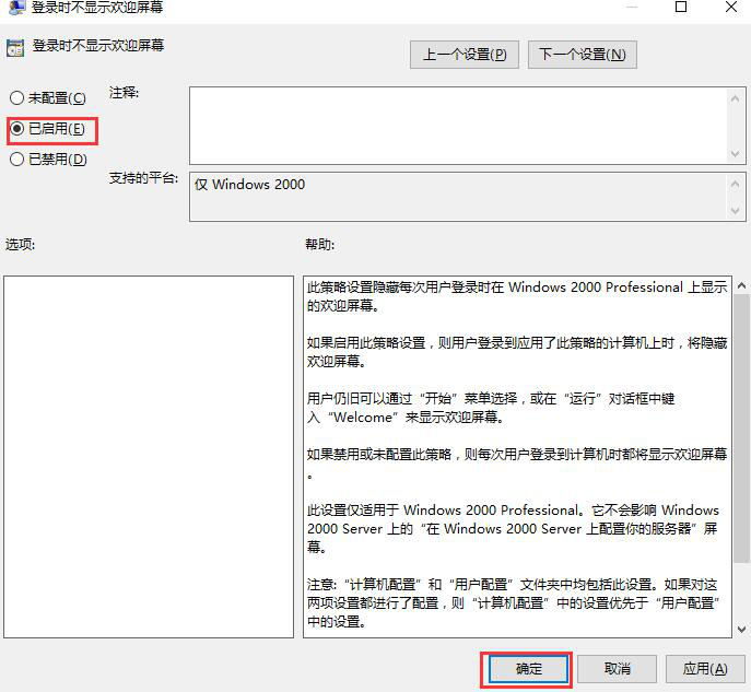 3、然后在弹出的窗口中,点击【已启用】,然后确定就能够完成来了。