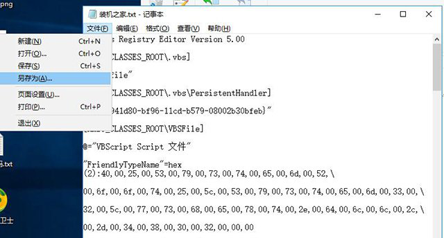 将以上的代码复制到文本文档中,将它另存为vbs.reg文件。